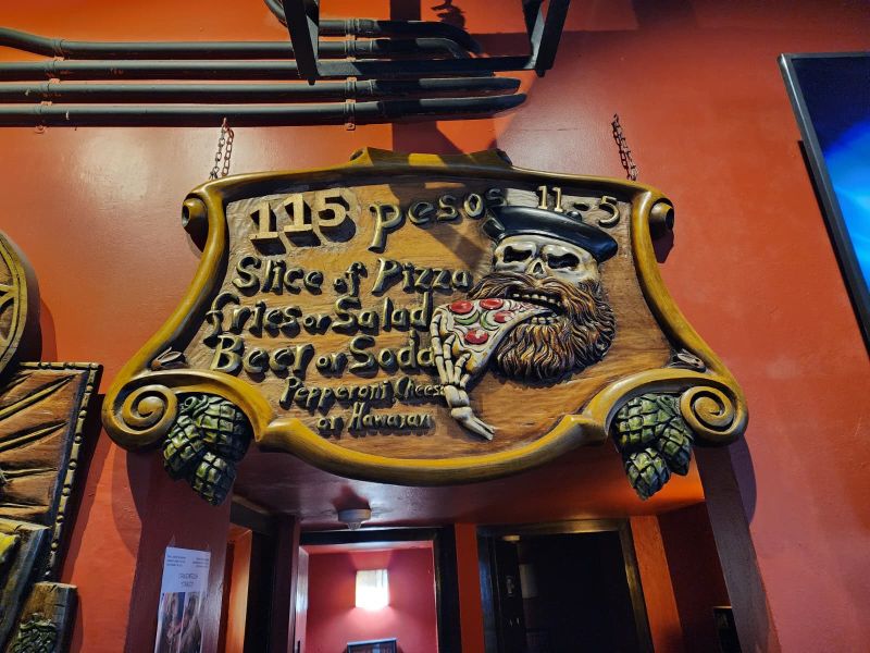 From 4-6pm every day you can have a pint of their hand made craft beer for 45 pesos. It’s a great deal when you consider a Pacifico or a Corona will set you back from between 30-50 pesos at most Vallarta bars and here you have a craft IPA or an ale or a stout for 45 pesos a pint. The last time I checked a pint was 16 ounces, that’s bigger than a 12 oz bottle of Pacifico. They also have pizza by the slice, pepperoni, cheese or Hawaiian for only 45 pesos a slice. They have another deal from 11am-5pm for 115 pesos or about $6.25 US, you get a pint of beer, a slice of pizza and your choice of a salad or a plate of French fries. It’s a steal. I’m going to have Conner and Stephanie, the owners of Los Muertos Brewing and their other amazing restaurant and brewery, El