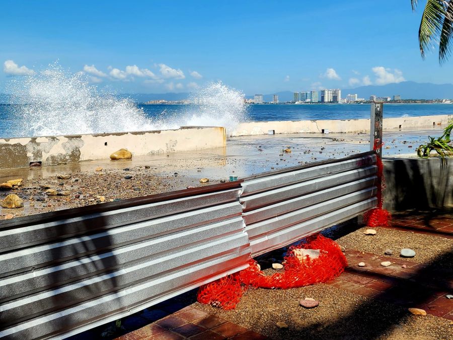 Now the second event actually occurred first several days ago beginning in the morning of October 7th, when high waves generated by Hurricane Priscilla which passed about 450 kilometers west of the Bahia de Banderas on the 6th. Although there was not a drop of rain in the two days the hurricane passed by the bay on October 5th and 6th, and by the way in Vallarta, the winds were nonexistent, but it was the waves that pummeled the coastline and flooded and severely damaged several popular restaurants. El Barracuda and Restaurant El Solar took big hits in Colonia Cinco de Diciembre with waves just clobbering them and destroying the insides of the two restaurants.
